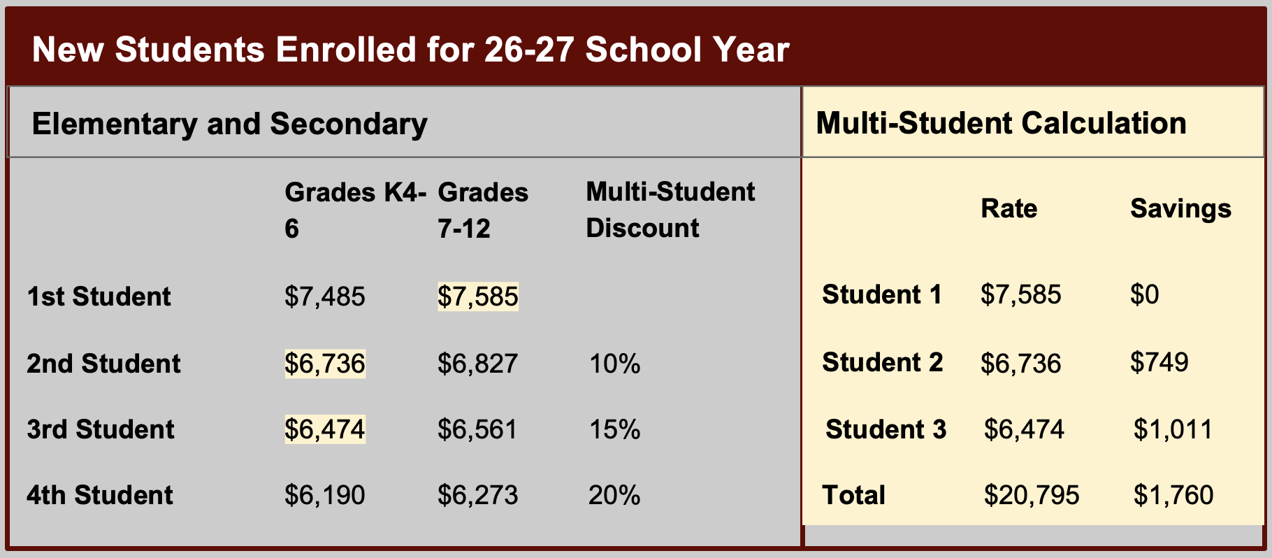 Multi-student Family Pricing Discount