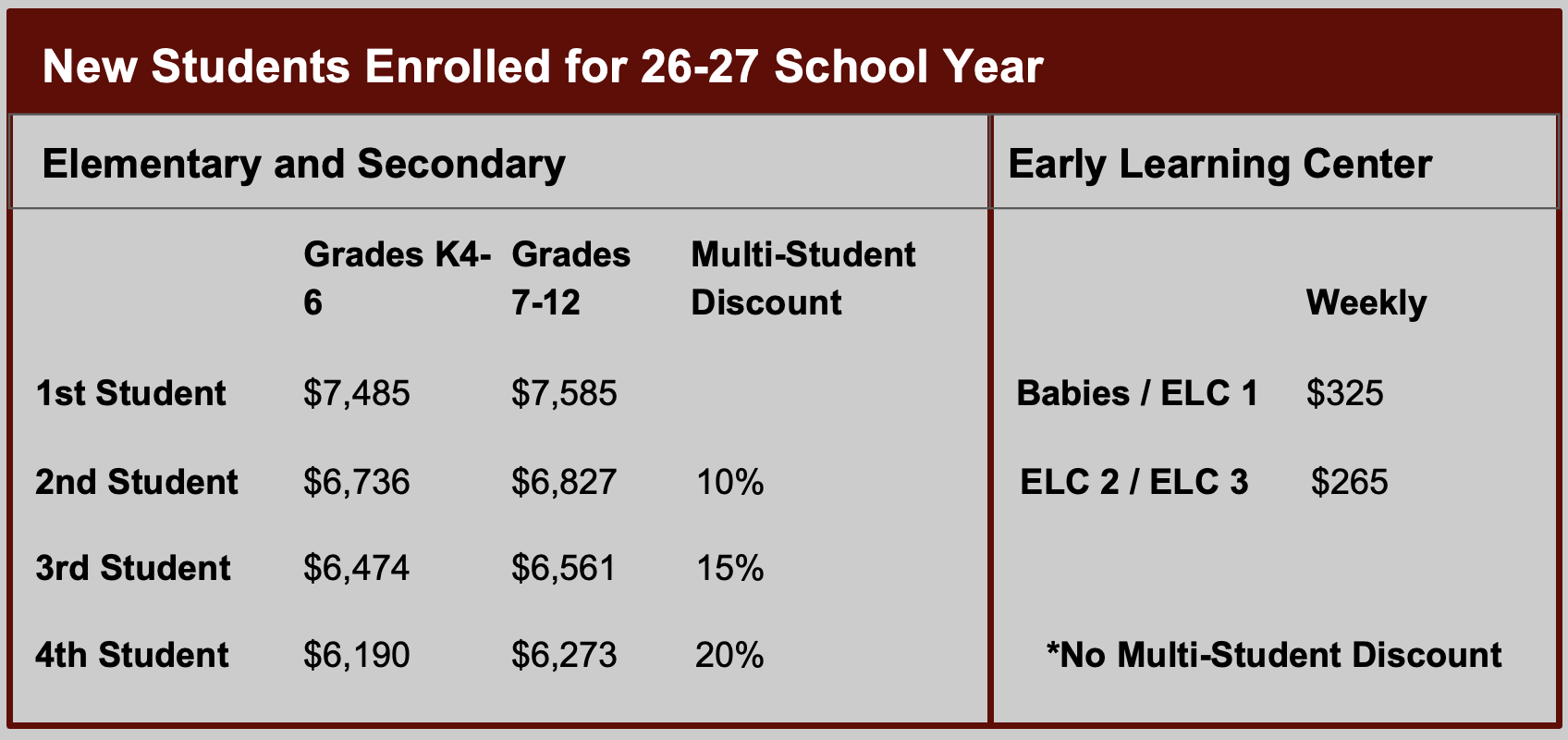 2026-2027 Tuition Rates
